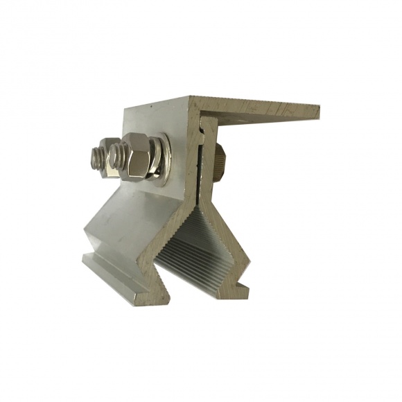 铝合金夹具适用于各种彩钢板屋面的光伏支架安装。使用我们的彩钢瓦夹具不用打孔穿透彩钢瓦屋面,杜绝了因安装组件而引起的漏水现象。彩钢瓦卡扣使用铝合金材质和不锈钢配件组合,可根据客户要求定制尺寸。